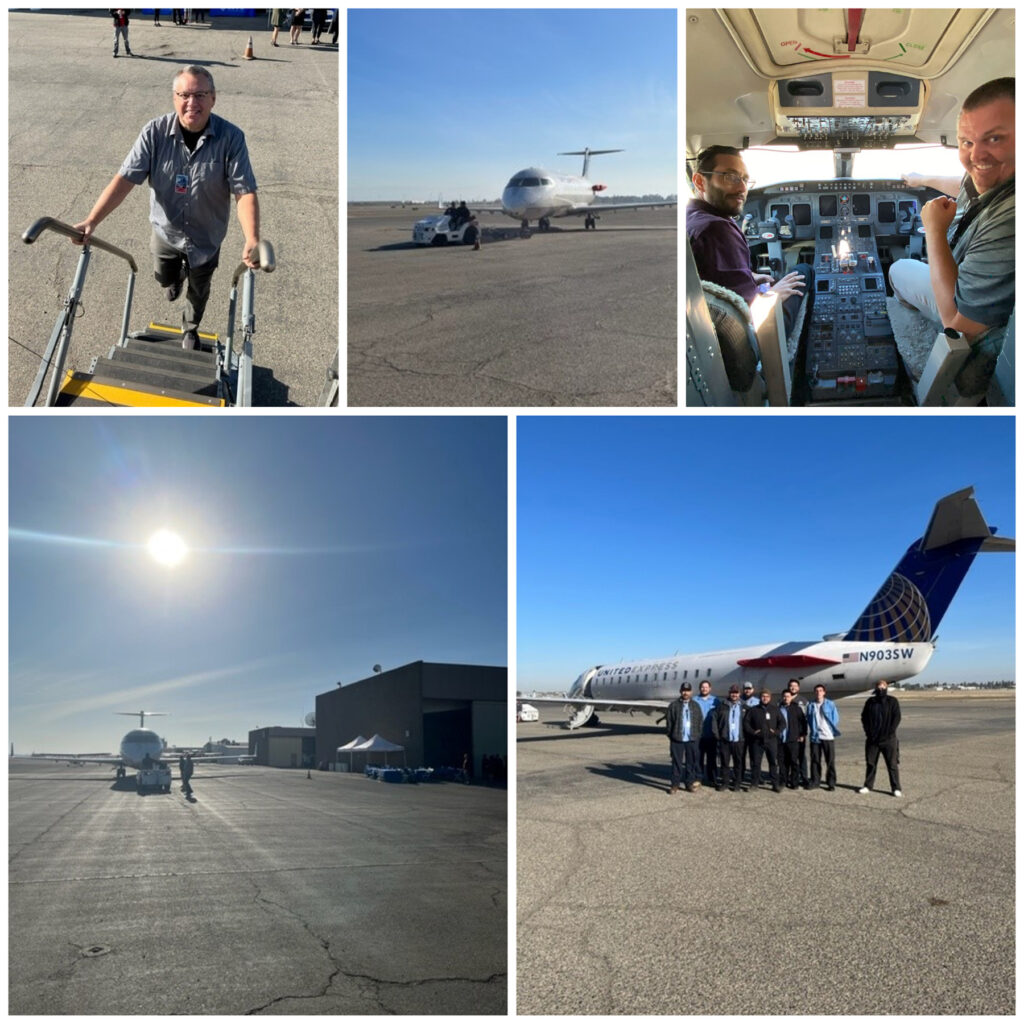In 2021 we announced the relaunch of SkyWest’s AMT Pathway Program, which offers students in SJVC’s Aviation Maintenance Technology (AMT) program the opportunity to get a jumpstart on their career while enrolled at SJVC. Less than a year later, we announced that students in the AMT Pathway Program were eligible for up to $7,600 in educational assistance and reimbursements[1]. Today we are honored to share with you that SkyWest Airlines has donated a retired passenger aircraft to SJVC, the CRJ200 Bombardier, to provide students with an enhanced experience as they learn and hone their skills working on the same type of aircraft they will work on once they complete their training program.